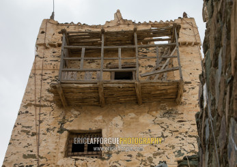 Wooden balcony on al-Namas fort, Al-Bahah region, Altawlah, Saudi Arabia