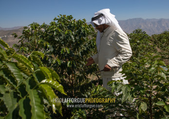 Saudi farmer in a coffee plantation, Jizan Province, Addayer, Saudi Arabia