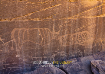 Petroglyphs on a rock depicting cows, Najran Province, Minshaf, Saudi Arabia