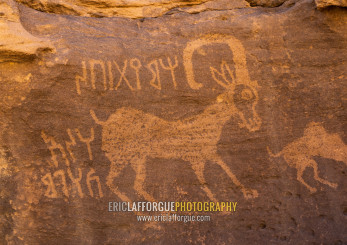 Petroglyphs on a rock depicting ibex, Najran Province, Thar, Saudi Arabia