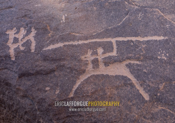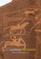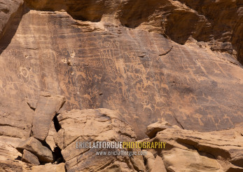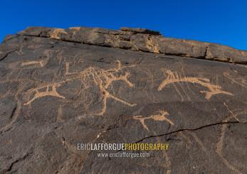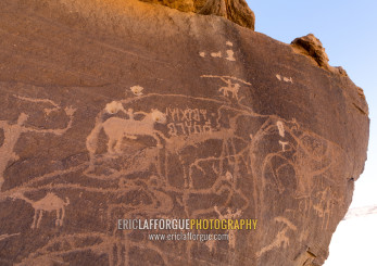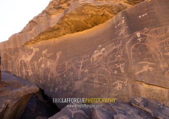 Petroglyphs on a rock depicting hunters, Najran Province, Thar, Saudi Arabia