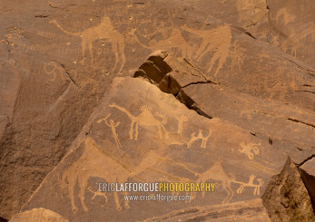 Petroglyphs on a rock depicting camels, Najran Province, Thar, Saudi Arabia