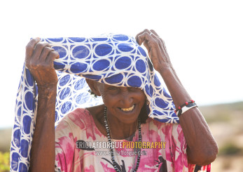 Old somali woman adjusting her hijab, Awdal region, Zeila, Somaliland