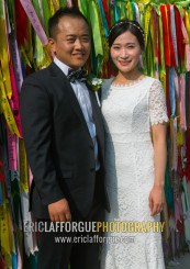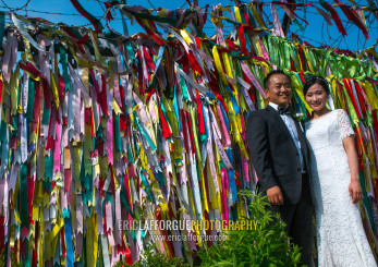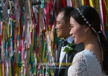 Home>Countries>South Korea>North korean defector joseph park with his south korean fiancee juyeon in front of messages of peace written on ribbons left on dmz, Sudogwon, Paju, South korea