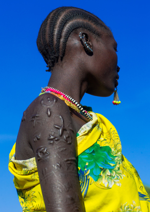 Toposa tribe woman with scarifications on the face, Namorunyang State, Kapoeta, South Sudan