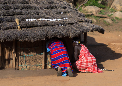 Women entering in a Larim tribe house, Boya Mountains, Imatong, South Sudan