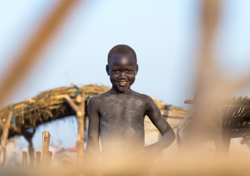 Smiling Mundari tribe boy in a cattle camp, Central Equatoria, Terekeka, South Sudan