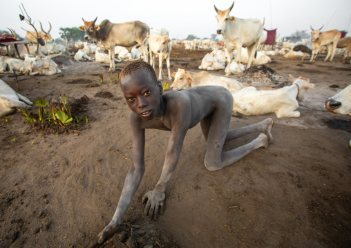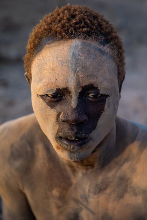 Mundari tribe boy covered in ash to protect from the mosquitoes and flies, Central Equatoria, Terekeka, South Sudan