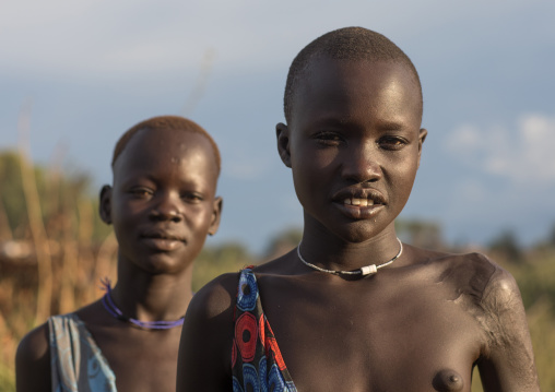 Portrait of Mundari tribe teenage girls, Central Equatoria, Terekeka, South Sudan
