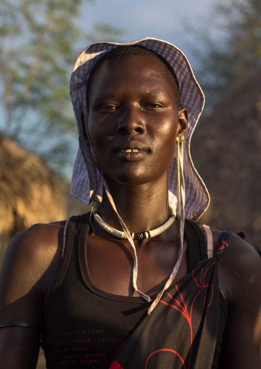 Portrait of a Larim tribe woman with eaerrings and Nose earrings, Boya Mountains, Imatong, South Sudan