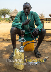 Mundari tribe man smoking shisha, Central Equatoria, Terekeka, South Sudan