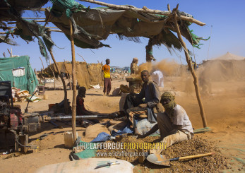 Sudan, Khartoum State, Alkhanag, men searching for gold