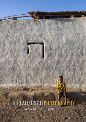 Sudan, Nubia, Tumbus, kid sitting in front of a traditional house