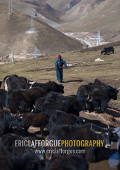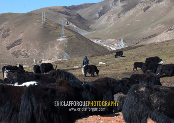 Tibetan nomad herds yaks, Tongren County, Rebkong, China