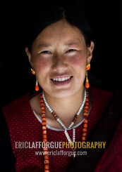 Portrait of a tibetan nomad woman, Qinghai province, Tsekhog, China