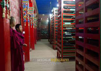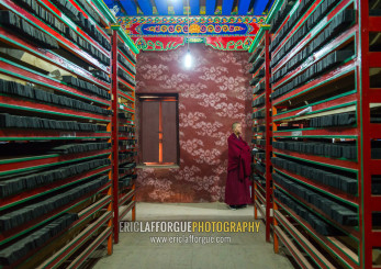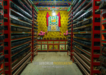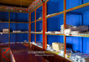 Tibetan scriptures printed from wooden blocks in Barkhang library, Gansu province, Labrang, China