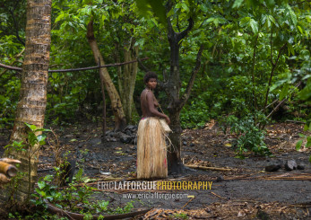Topless woman with a traditional grass skirt, Tanna island, Yakel, Vanuatu