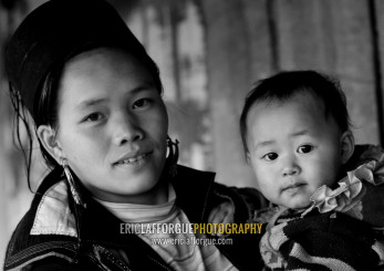 Black hmong mother and baby in traditional clothes, Sapa, Vietnam