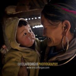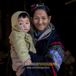 Black hmong grandmother with her grandson in the arms, Sapa, Vietnam