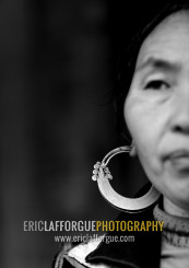 Black hmong woman wearing a big earring, Sapa, Vietnam