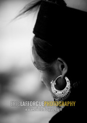 Black hmong woman wearing a big earring, Sapa, Vietnam