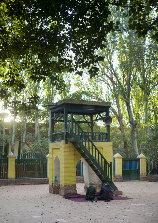 Uyghur Sufi Men Praying At Imam Asim Tomb In The Taklamakan Desert, Xinjiang Uyghur Autonomous Region, China