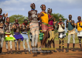 Bashada Tribe Men Dancing And Jumping, Dimeka, Omo Valley, Ethiopia