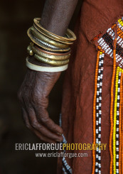 Home>People>Datoga - Tanzania>Tanzania, Serengeti Plateau, Lake Eyasi, the numerous decorated iron, brass, copper and leather bracelets worn by a datoga woman