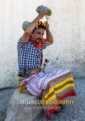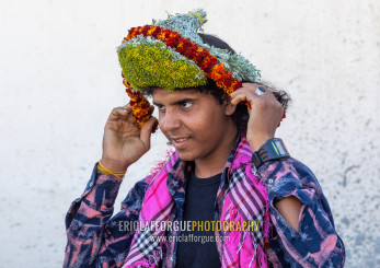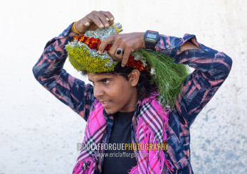 Portrait of a flower man making a floral crown on his head, Jizan Province, Addayer, Saudi Arabia