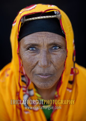Portrait of a Gabra tribe woman wearing the traditional headwear, Marsabit County, Chalbi Desert, Kenya