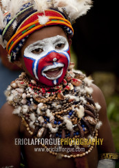 Highlander boy with traditional clothing during a sing-sing, Western Highlands Province, Mount Hagen, Papua New Guinea