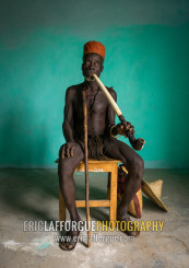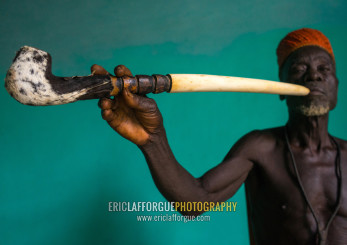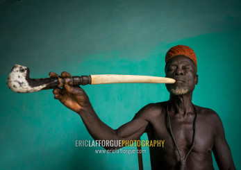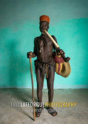 Benin, West Africa, Taneka-Koko, traditional healer called mister tcholi with his giant pipe
