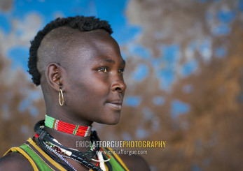 Girl from menit tribe posing, Jemu, Omo valley, Ethiopia
