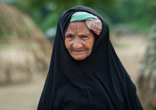 Benin, West Africa, Savalou, an old tattooed fulani peul tribe woman portrait