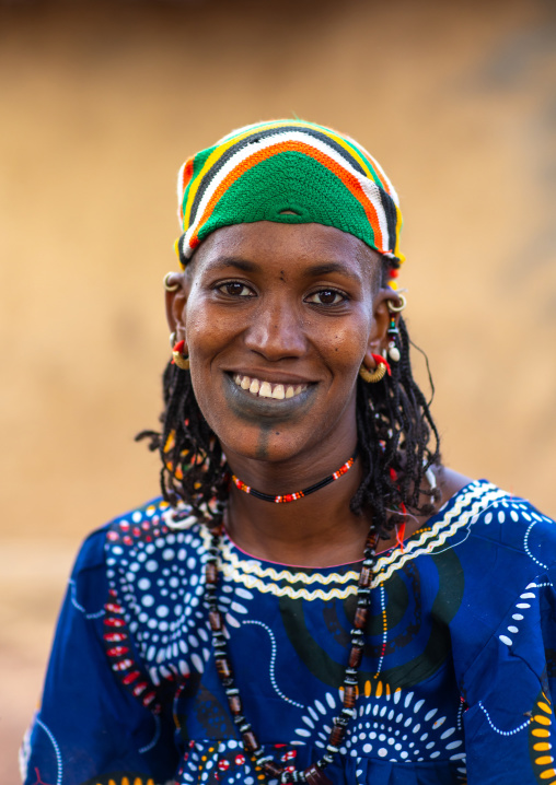 Portrait of a Peul tribe woman with tattooed lips, Savanes district, Boundiali, Ivory Coast