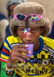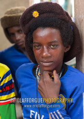 Benin, West Africa, Copargo, young fulani peul tribe man with colorful and fashionable clothes