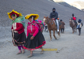 Peruvian People Climbing To The Qoyllur Riti Festival, Ocongate Cuzco, Peru