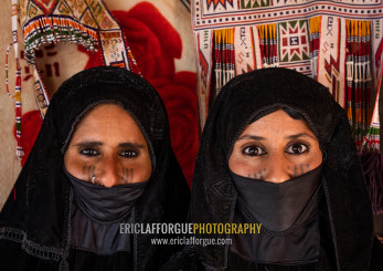 Portrait of Rashaida tribe veiled women inside a tent, Kassala State, Kassala, Sudan