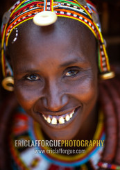Portrait of a smiling Rendille tribe woman, Marsabit County, Marsabit, Kenya