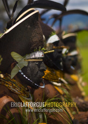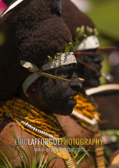 Enga kompian suli muli wigmen dancing in line during a Sing-sing, Western Highlands Province, Mount Hagen, Papua New Guinea