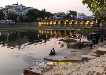 Illuminated bridge on Gangaur ghat, Rajasthan, Udaipur, India