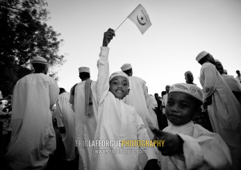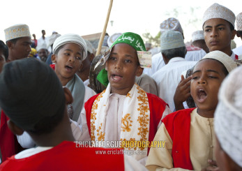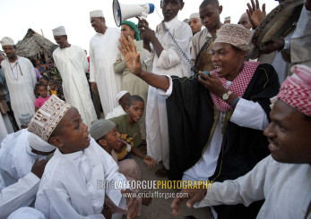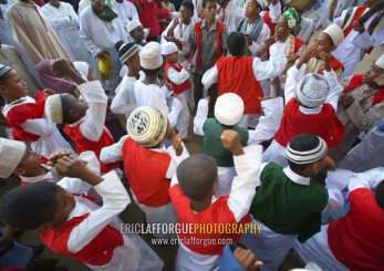 Muslim men celebrating the Maulid festival, Lamu County, Lamu, Kenya