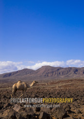 Camel on volcanic rocks, Turkana lake, Loiyangalani, Kenya