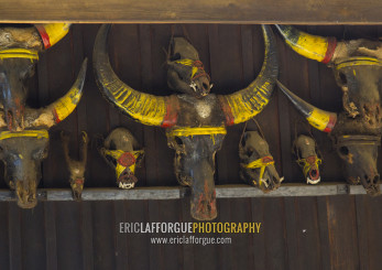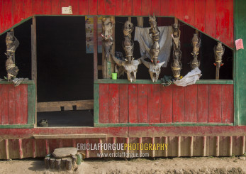 Buffalos And Gaurs Skulls On A Chin House, Mindat, Myanmar
