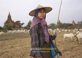 Sheperd Woman In Front Of An Old Temple, Bagan, Myanmar