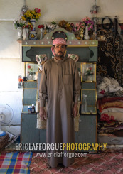 Saudi farmer in his traditional house, Najran Province, Najran, Saudi Arabia