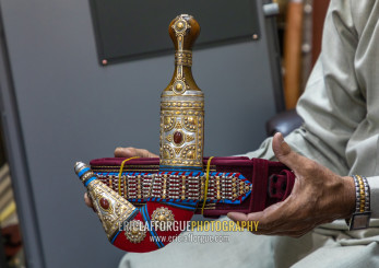 Saudi man holding a janbiya dagger, Najran Province, Najran, Saudi Arabia