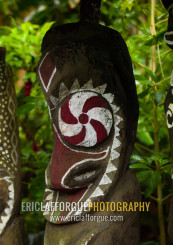 Painted slit gong drums in the jungle, Ambrym island, Olal, Vanuatu
