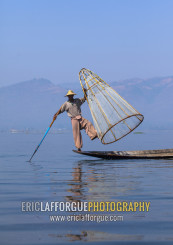 Traditional Fisherman With Fish Trap In Boat, Inle Lake, Myanmar