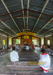 People inside a church, New Ireland Province, Langania, Papua New Guinea
